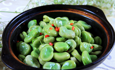 5.蠶豆不可生吃,應將生蠶豆多次浸泡呈焯水后再進行烹制。