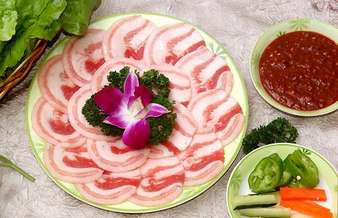 五花肉(又稱(chēng)肋條肉、三層肉)位于豬的腹部,豬腹部脂肪組織很多,其中又夾帶著肌肉組織,肥瘦間隔,故稱(chēng)“五花肉”。這部分的瘦肉也最嫩且最多汁。五花肉一直是一些代表性中菜的最佳主角,如梅菜扣肉、南乳扣肉、東坡肉、回鍋肉、魯肉飯、瓜仔肉、粉蒸肉等等。它的肥肉遇熱容易化,瘦肉久煮也不柴。