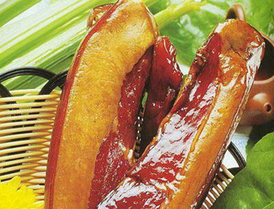 臘肉是湖北、四川、湖南、江西、貴州、甘肅隴西、陜西的特產(chǎn),已有幾千年的歷史。據(jù)記載,早在兩千多年前,張魯稱(chēng)漢寧王,兵敗南下走巴中,途經(jīng)漢中紅廟塘?xí)r,漢中人用上等臘肉招待過(guò)他;又傳,清光緒二十六年,慈禧太后攜光緒皇帝避難西安,陜南地方官吏曾進(jìn)貢臘肉御用,慈禧食后,贊不絕口。加工制作臘肉的傳統(tǒng)習(xí)慣不僅久遠(yuǎn),而且普遍。每逢冬臘月,即“小雪”至“立春”前,家家戶(hù)戶(hù)殺豬宰羊,除留夠過(guò)年用的鮮肉外,其余乘鮮用食鹽,配以一定比例的花椒、大茴、八角、桂皮、丁香等香料,腌入缸中。七~十五天后,用棕葉繩索串掛起來(lái),滴干水,進(jìn)行加工制作。選用柏樹(shù)枝、甘蔗皮、椿樹(shù)皮或柴草火慢慢熏烤,然后掛起來(lái)用煙火慢慢熏干而成?;驋煊跓窕鸬脑铑^頂上,或吊于燒柴火的烤火爐上空,利用煙火慢慢熏干。西部地區(qū)林茂草豐,幾乎家家都燒柴草做飯或取暖,是熏制臘肉的有利條件。即使城里人,雖不殺豬宰羊,但每到冬臘月,也要在那市場(chǎng)上挑那上好的白條肉,或肥或瘦,買(mǎi)上一些,回家如法腌制,熏上幾塊臘肉,品品臘味。如自家不燒柴火,便托鄉(xiāng)下親友熏上幾塊