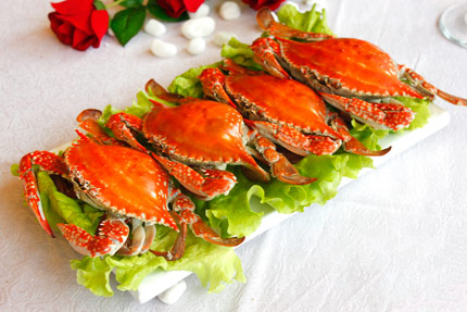 雌蟹紅膏滿蓋,口味極佳。梭子蟹可鮮食,或蒸、或煎、或炒,或一切兩半燉豆板醬,或用蟹炒年糕、炒咸菜、煮豆腐,是沿海一帶居民餐桌上的常菜。亦可腌食,就是將新鮮梭子蟹投入鹽鹵中浸泡,數(shù)日后即可食用,俗稱“新風(fēng)搶蟹’。